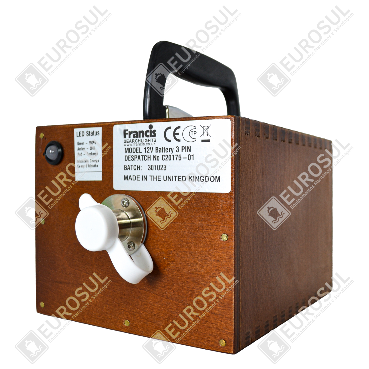 The C20175-01 Battery Box is designed for the FSP127 Aldis signaling lantern, ensuring reliable power with up to 2 hours of autonomy. It includes a 12V 7Ah lead-acid battery with an LED status indicator for charge monitoring. CE certified and SOLAS compliant, it is ideal for maritime and offshore operations.