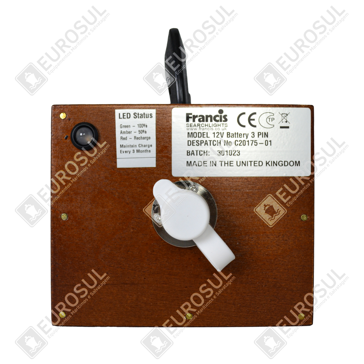 LED Indicator: Green (100%), Amber (50%), Red (recharge)