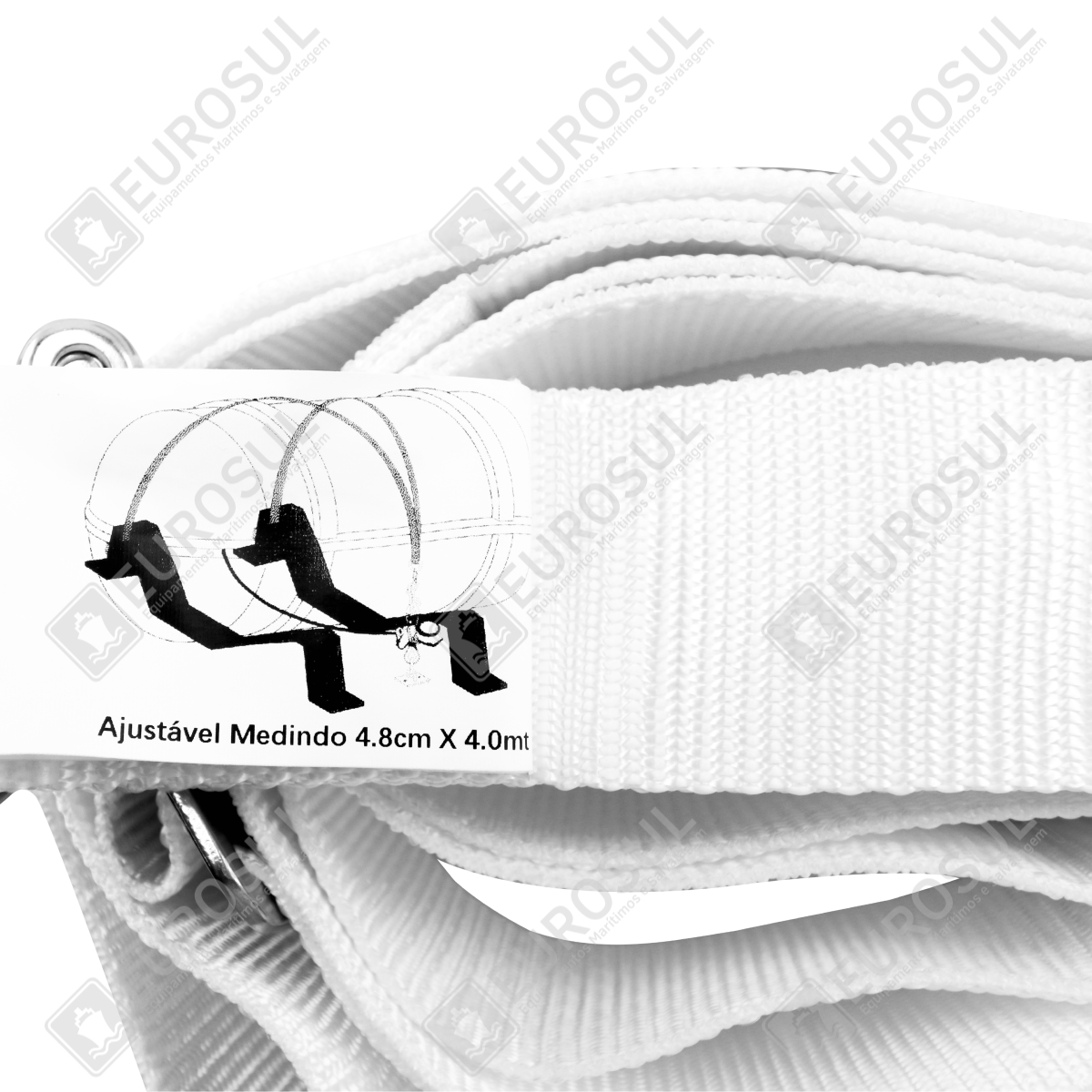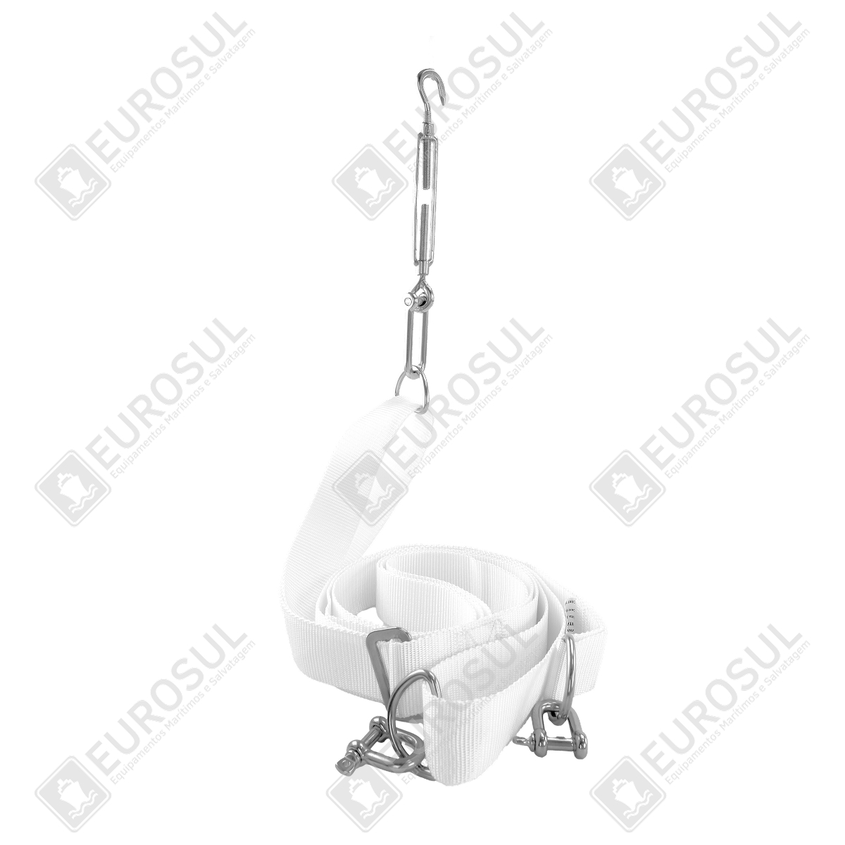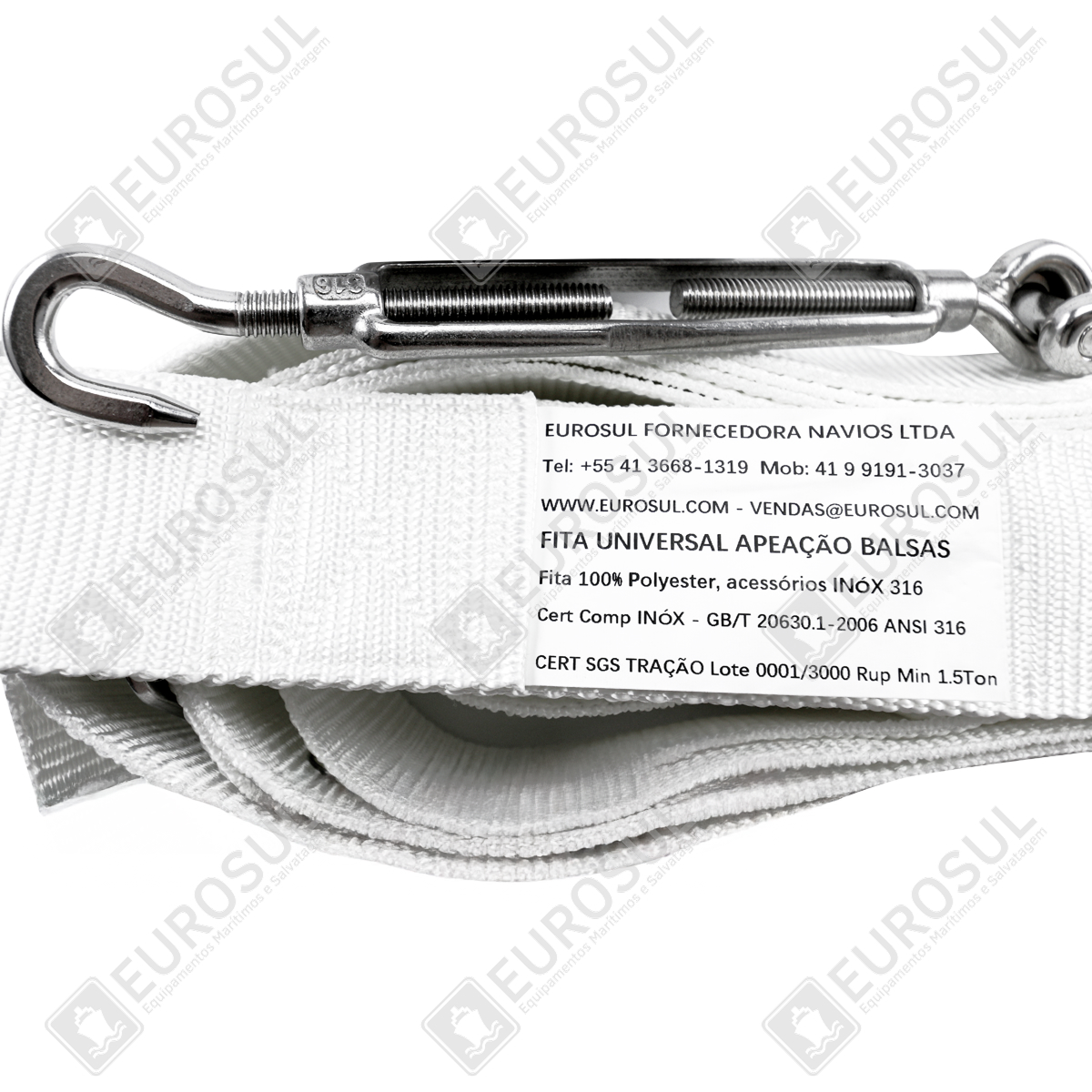 The Universal Strap for Inflatable Life Raft Lashing is engineered to ensure the secure fastening of life rafts aboard vessels. Made of high-tenacity 100% polyester webbing and AISI 316 stainless steel accessories, this strap resists tensile forces, corrosion, and harsh marine conditions. The turnbuckle tensioner system guarantees precise adjustment and firm securing during operations.