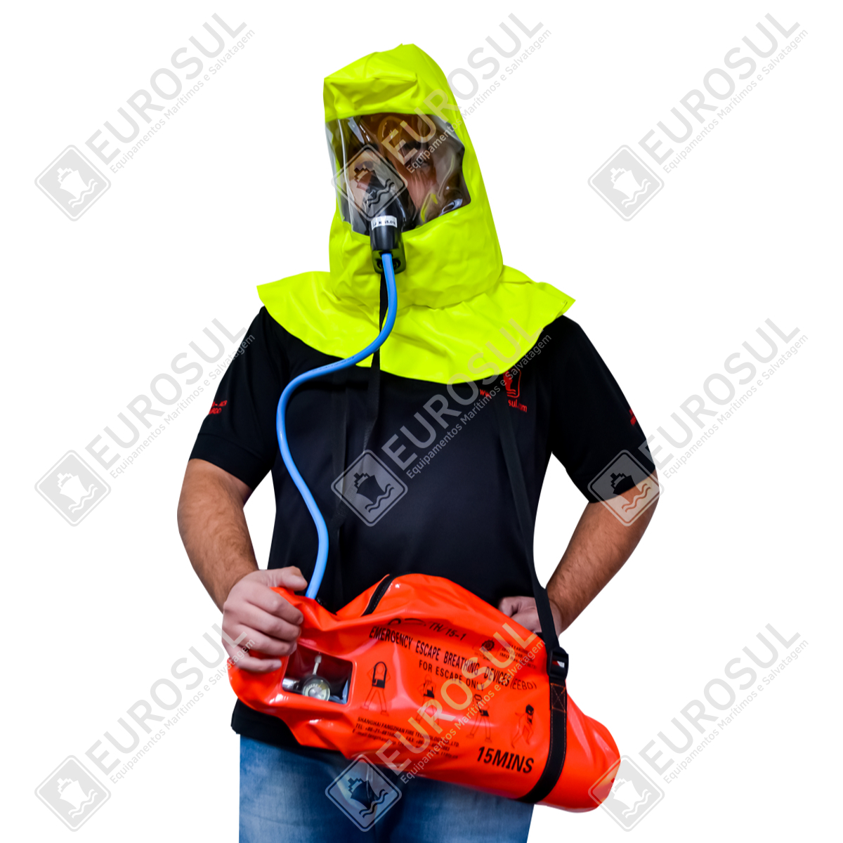 The EEBD TH/15-1 is an emergency escape device designed to provide immediate respiratory protection in high-risk situations, such as toxic gas exposure. Stored in a compact bag, the system automatically activates the breathable air supply upon opening, using a 200 bar, 3-liter steel cylinder, ensuring quick and safe evacuation. With CA certification of the Brazilian ministry of labor.