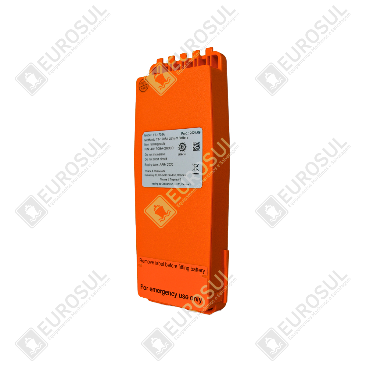 The McMurdo TT-1708A emergency battery is an essential component for the McMurdo R5 GMDSS VHF radio (20-001-01A), ensuring reliable power in critical situations. Designed with lithium iron disulfide technology, this non-rechargeable battery is intended exclusively for maritime emergencies. Its robust construction, featuring six hermetically sealed cells, provides maximum protection against physical and electrical short circuits, while offering high resistance to harsh marine environments.