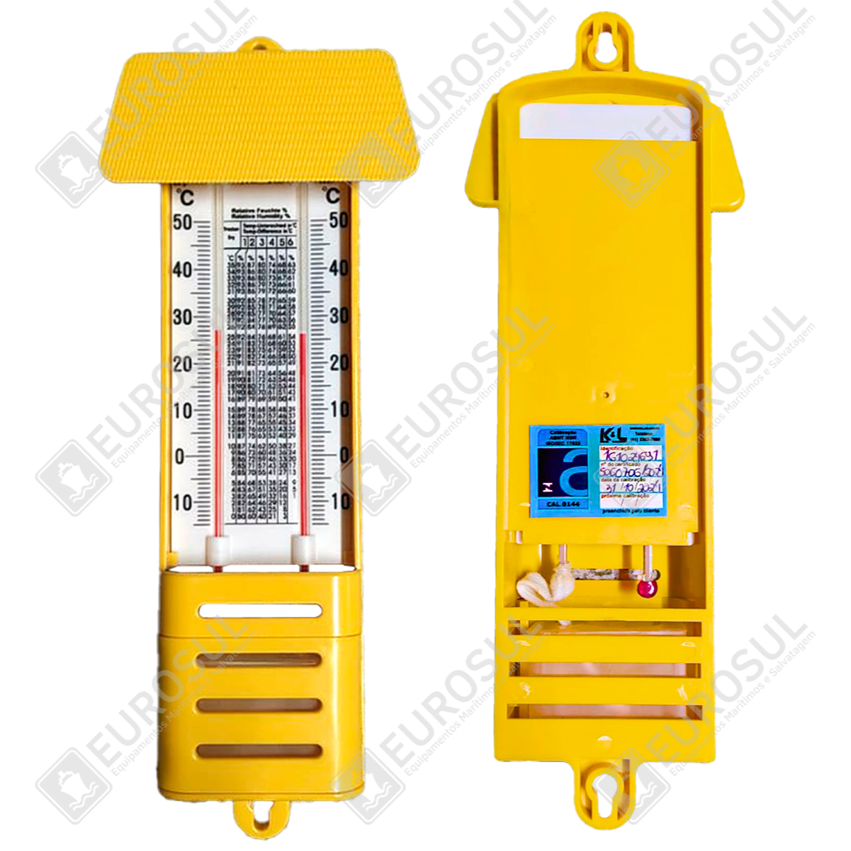 Composição: Termômetros seco e úmido integrados com escala de máxima e mínima