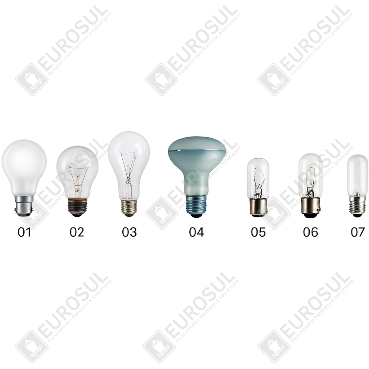 As lâmpadas incandescentes e de navegação listadas abaixo atendem a diversas aplicações em sistemas de iluminação embarcados, áreas técnicas, sinalização noturna e ambientes marítimos com exigências específicas de tensão, base e intensidade luminosa. Com potências variando de 25W a 1000W e tensões de 12V a 220V, essas lâmpadas oferecem performance confiável, substituição simples e conformidade com os padrões de segurança marítima (inclusive SOLAS para modelos de navegação).