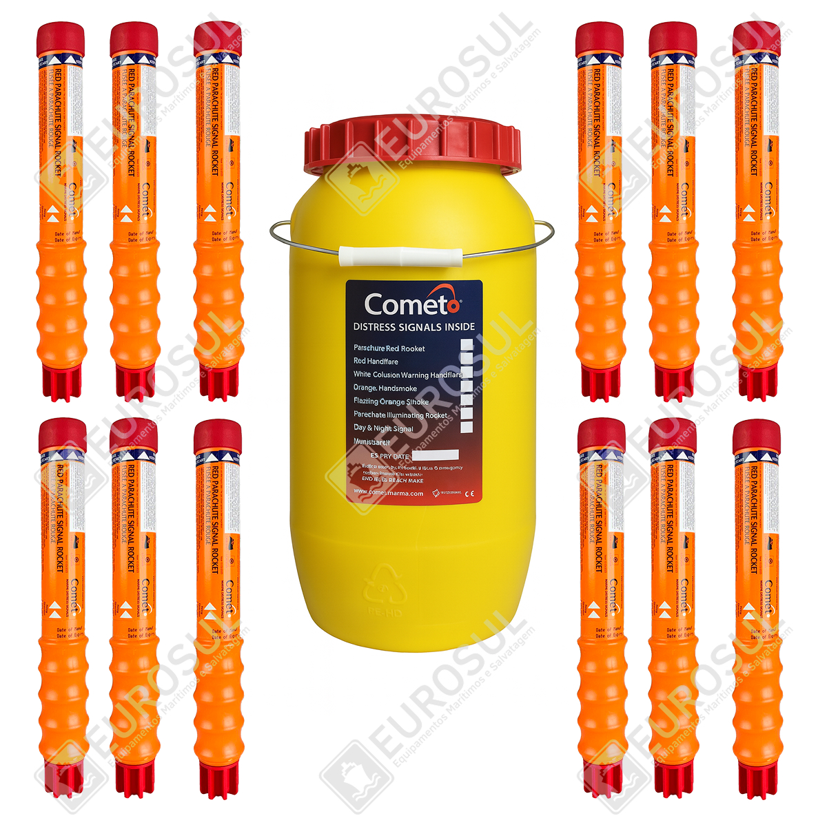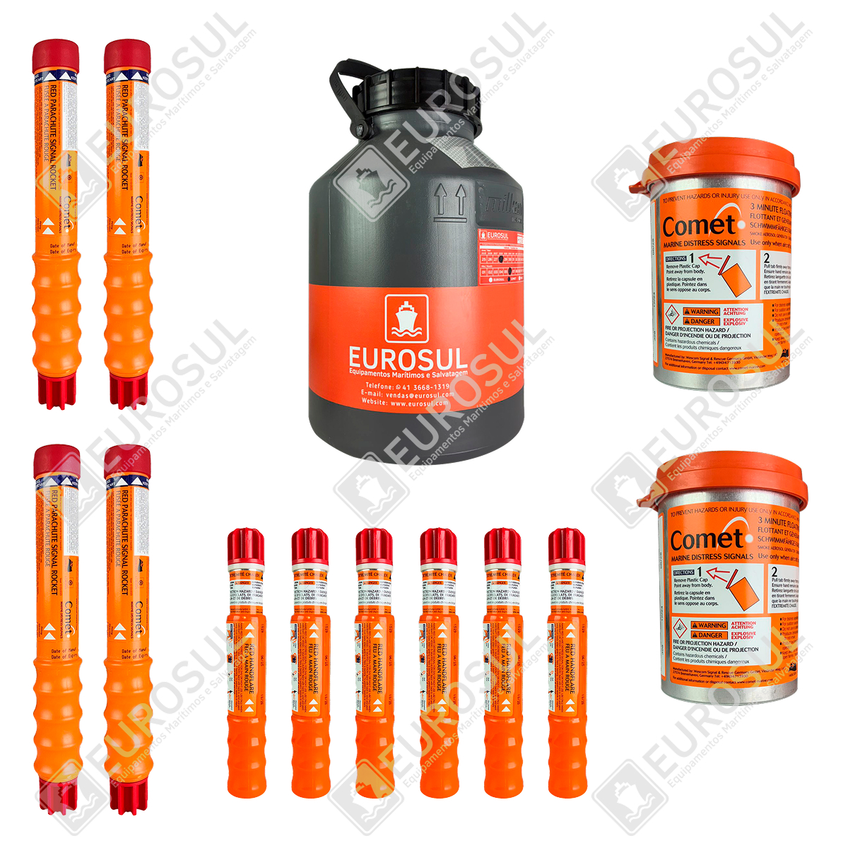 O Sinalizador Fumígeno Flutuante EUROSUL modelo CCY3-2 é um dispositivo pirotécnico de segurança marítima, desenvolvido para sinalização visual em situações de emergência durante o dia. Ao ser ativado, emite uma densa fumaça laranja por um período mínimo de 3 minutos, sendo ideal para localização de pessoas e embarcações em mar aberto. Com estrutura metálica selada e sistema de acionamento com cordão, o CCY3-2 é flutuante, à prova d’água e resistente às condições ambientais severas. O produto possui certificações internacionais e nacionais, incluindo SOLAS, MED (Módulo B), DNV, CCS e homologação DPC/Marinha do Brasil, sendo aprovado para uso em embarcações comerciais e plataformas offshore.