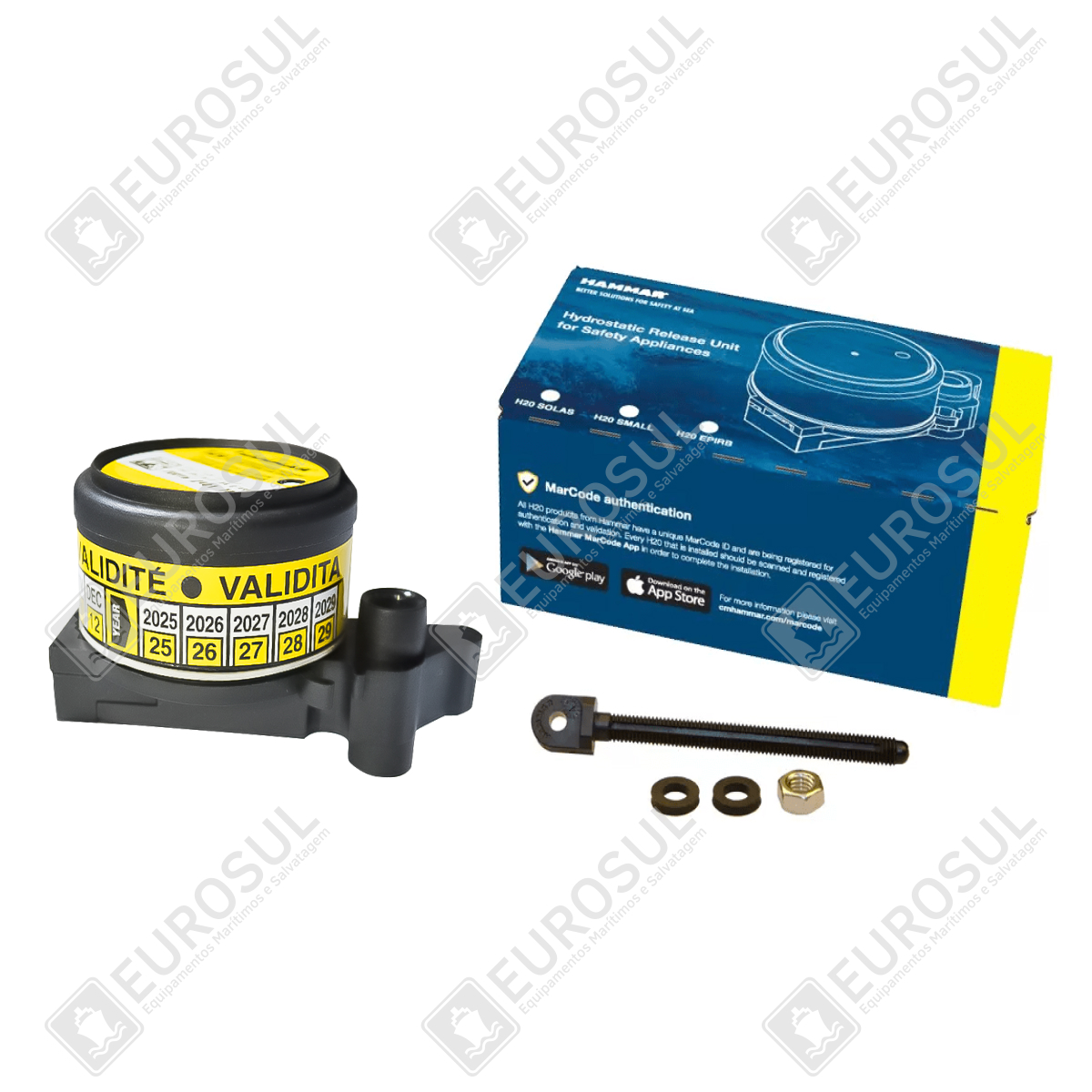 A Válvula Hidrostática Hammar H20E é amplamente utilizada por rádio balizadores EPIRB (Emergency Position-Indicating Radio Beacons). Reconhecida por sua eficiência, é adotada por 90% dos fabricantes mundiais de EPIRBs para assegurar a flutuação livre. Em caso de naufrágio, a Hammar H20E, ativada pela pressão da água, libera automaticamente o EPIRB. Ao atingir a superfície, o EPIRB emite sinais de identificação e localização para satélites. Substituindo cordas tradicionais, utiliza um parafuso plástico inovador que é cortado durante a ativação.