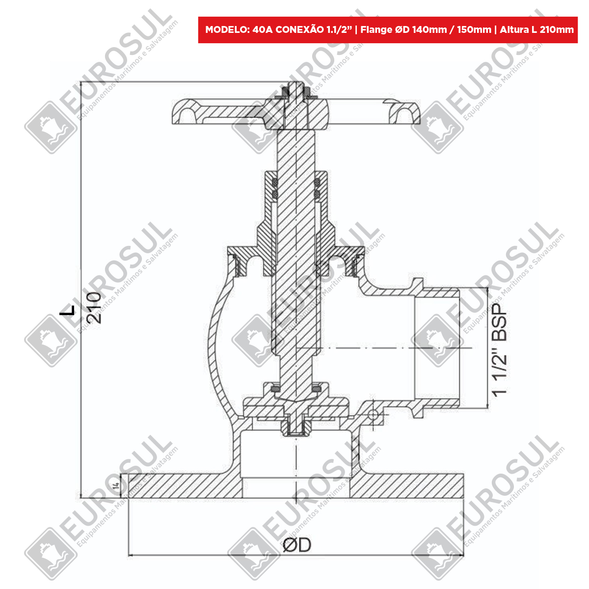 MODELO: 40A CONEXÃO 1.1/2” | Flange ØD 140mm / 150mm | Altura L 210mm